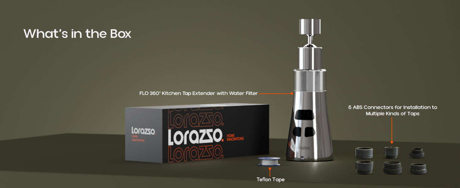 Upgrade your everyday kitchen experience with the Lorazzo FLO Tap Extension, a premium kitchen sink tap extender with a built-in tap water filter and 360° flexibility. Designed for Indian households, this powerful attachment converts your regular faucet into a multi-functional, water-saving tool. Enjoy 3 spray modes at the touch of a button, easily rinse fruits, clean dishes, and remove grime without splashing. The removable filter traps dust, sand and particles, ensuring you wash with cleaner water.