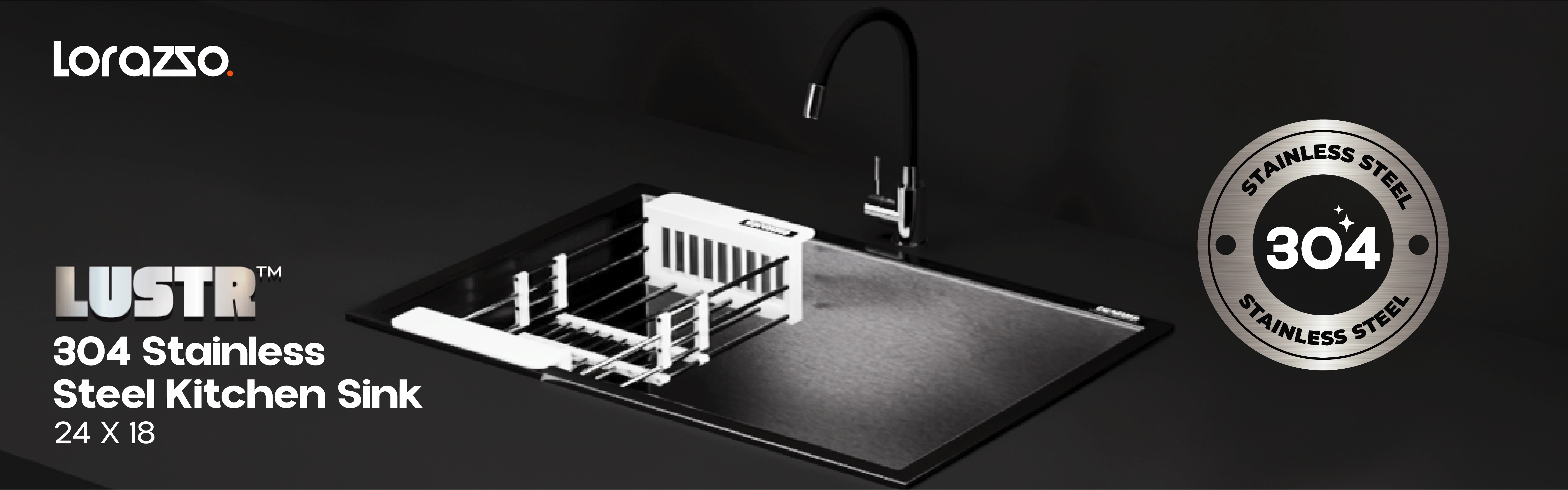 Lustr™ Stainless Steel 304 Kitchen Sink - 24X18 inches