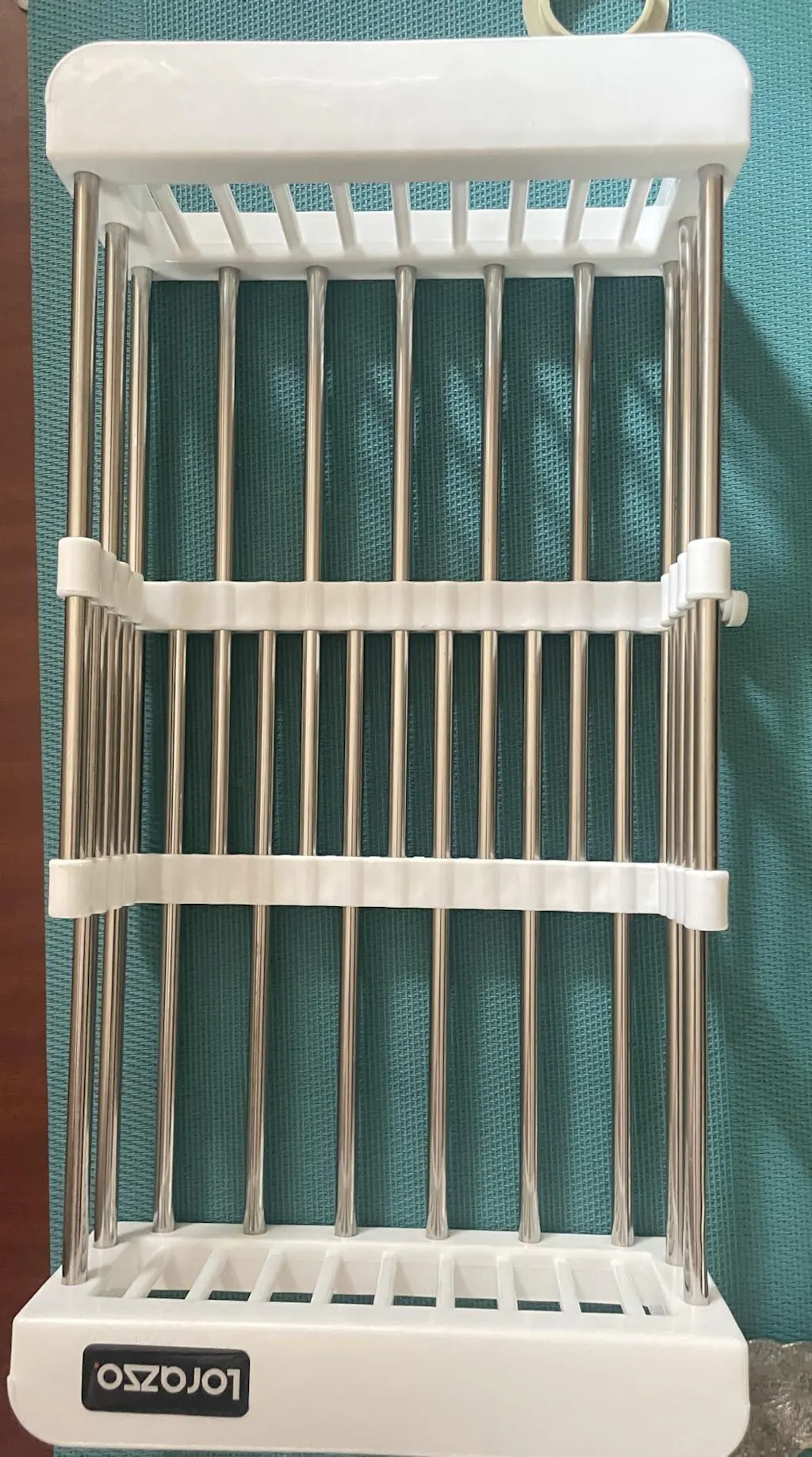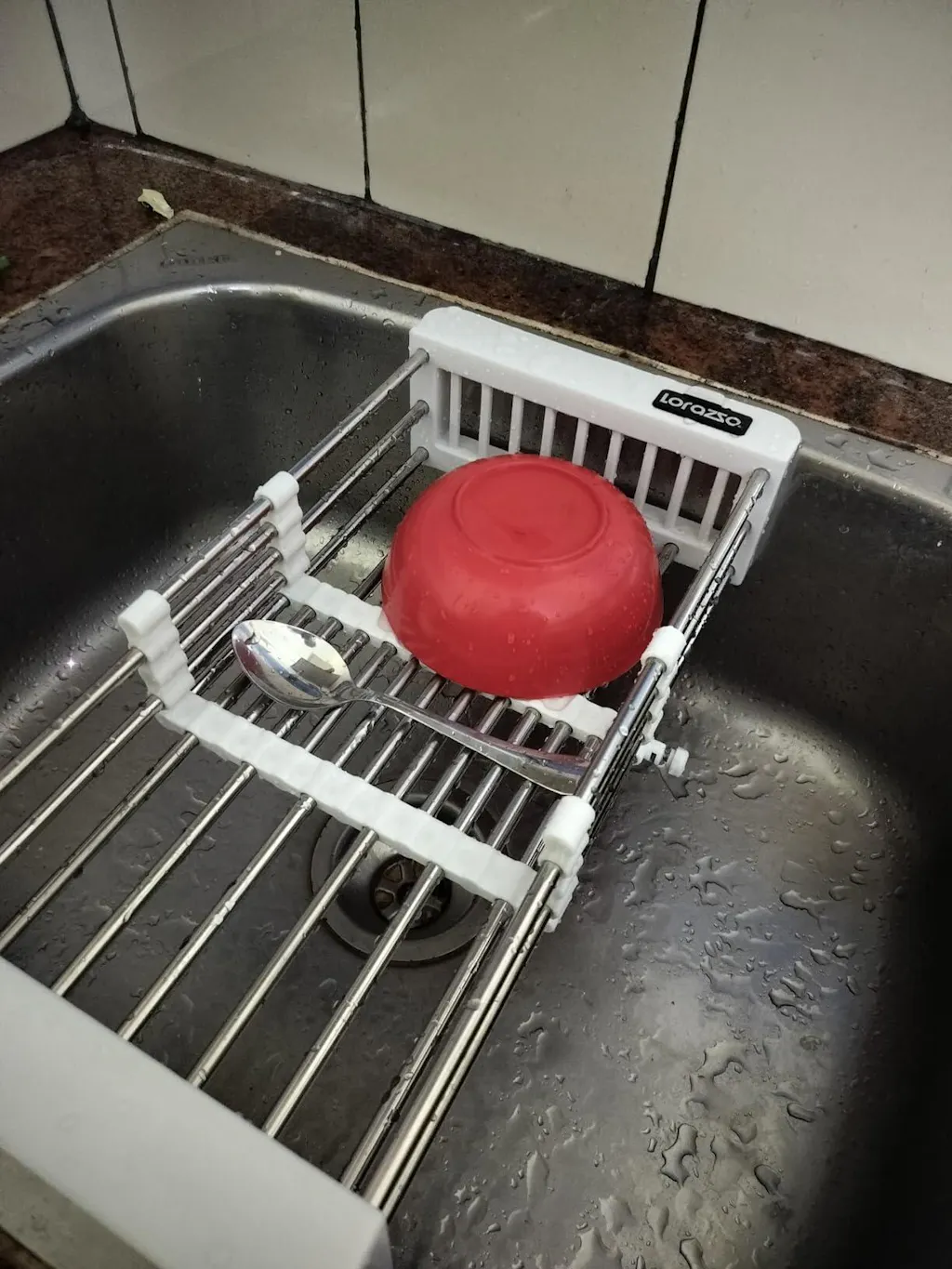 Meet your new kitchen multitasker. Designed for the everyday hustle of Indian kitchens, this smart sink drainer basket offers unmatched versatility and function. Whether you're rinsing veggies, draining pasta or organizing dishes, it handles it all with ease. It fits most sizes, while the sturdy ABS grip ends ensure a strong, no-slip hold across the kitchen sink rack area. A strong stainless steel rod delivers durability and rust resistance, making it a dependable part of your kitchen sink accessories. A unique hand-operated stability screw that locks the basket in place , no more sliding or shifting while you work.