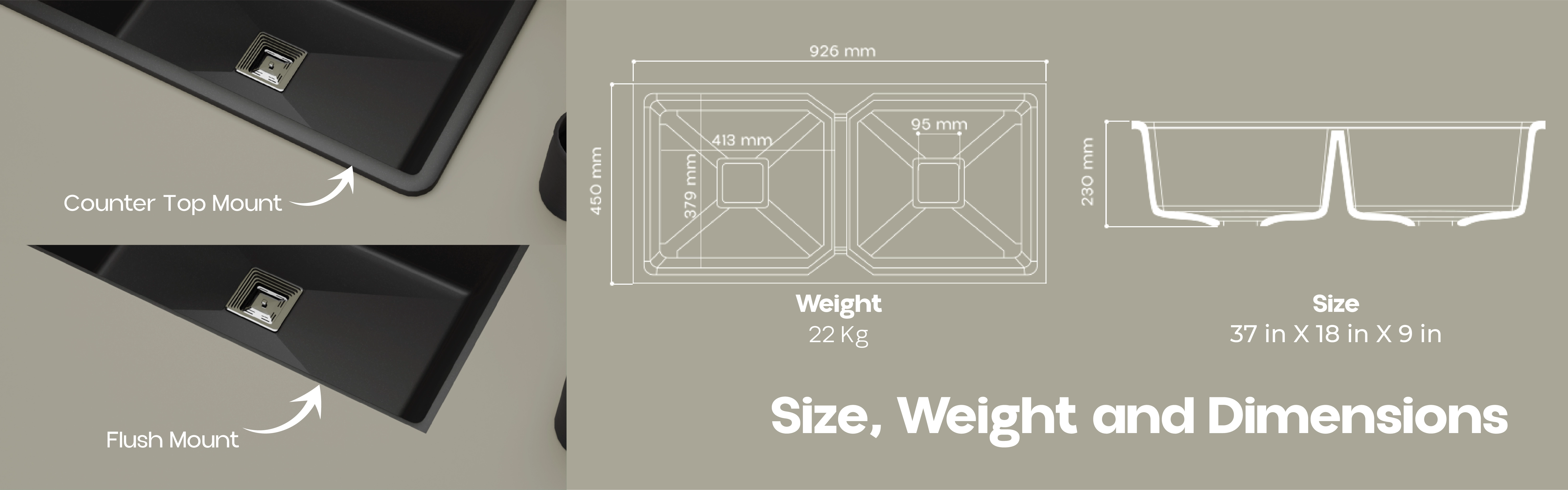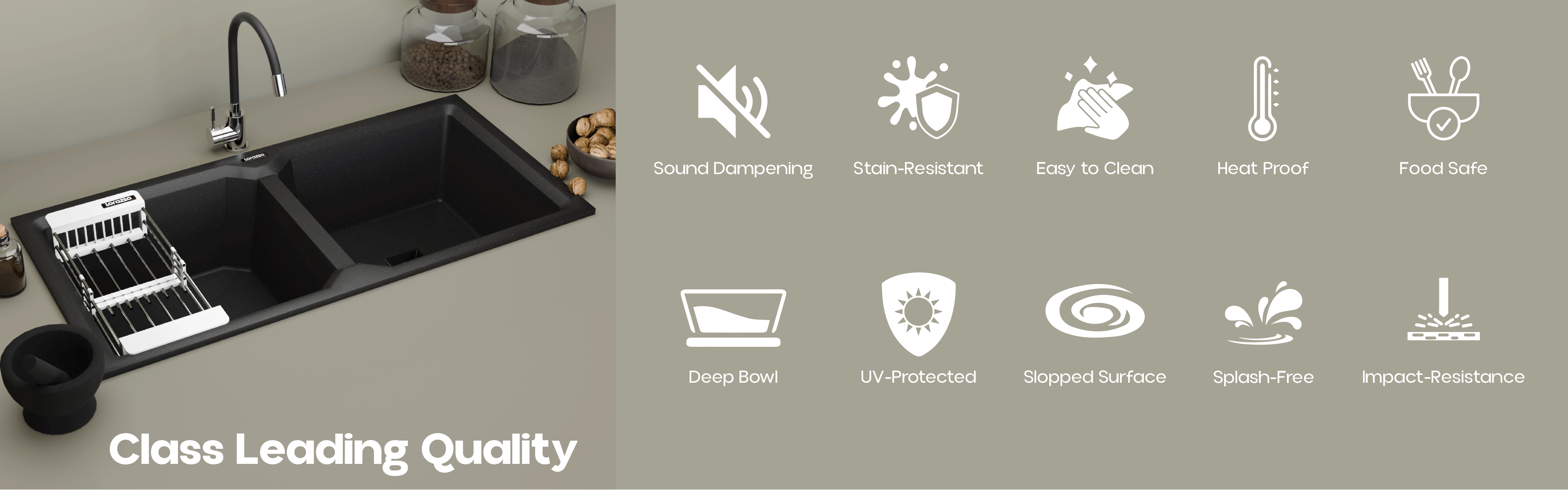 Upgrade your kitchen with Quartz Kitchen Sink — a premium 37x18x9 inch double bowl sink that blends timeless style with durability. Featuring a natural stone-inspired matte finish, it’s scratch, impact, and noise-resistant for everyday ease. The bold black tone complements modern and classic kitchens alike.